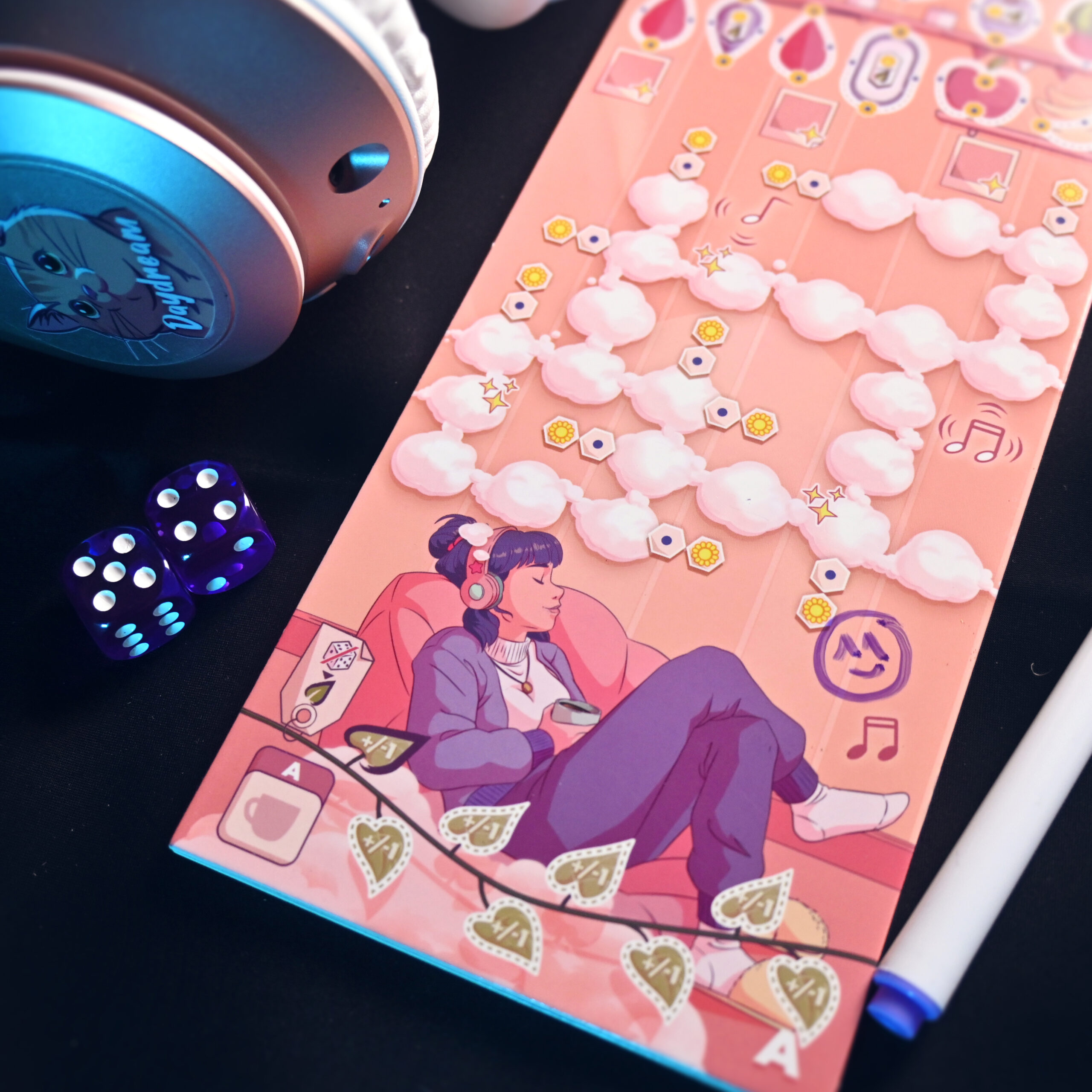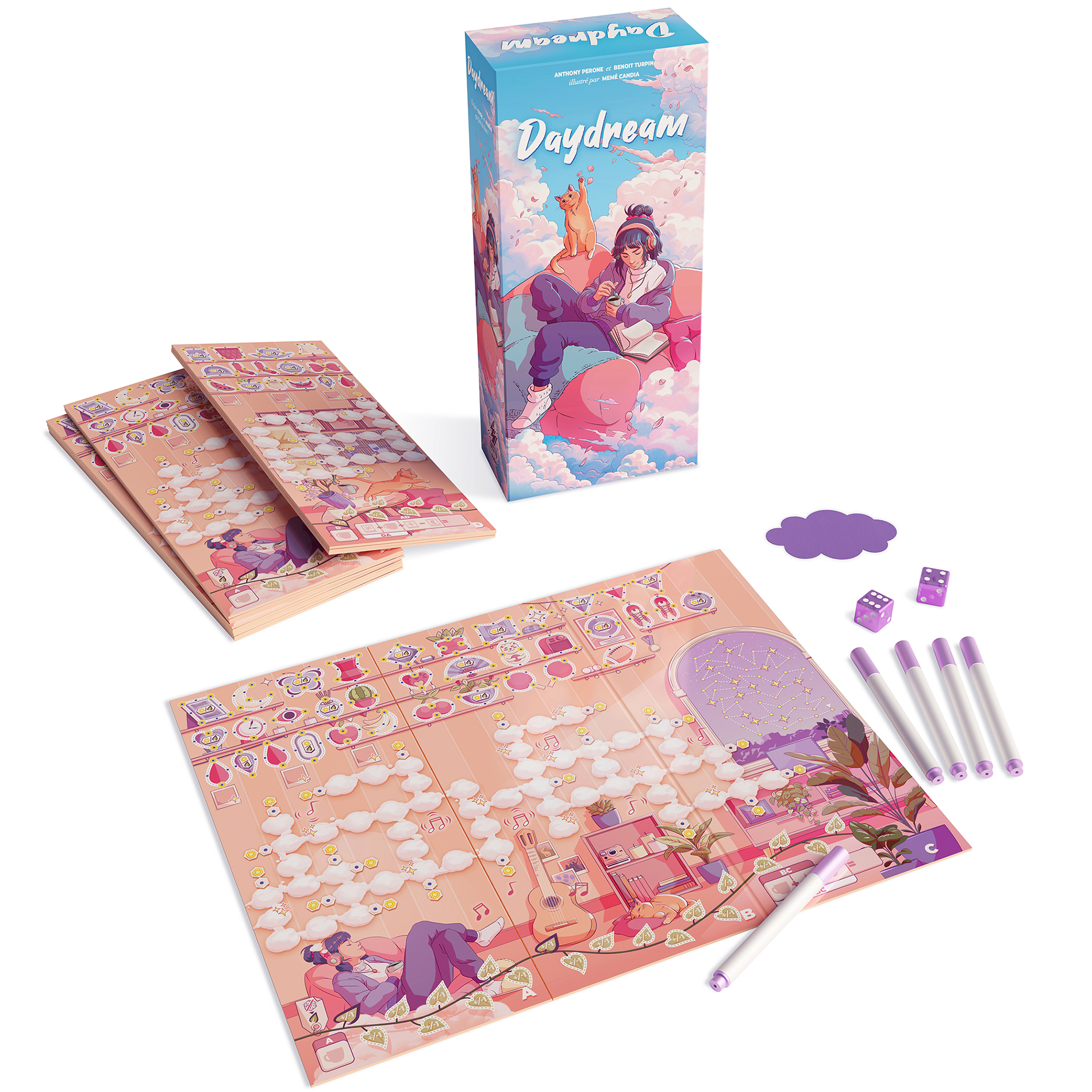 Lancez les dés et remplissez votre grille afin que chaque ligne de nuages ne comporte que des chiffres différents. Pliez et dépliez votre plateau pour former de nouveaux décors et explorer ce jeu de détente.